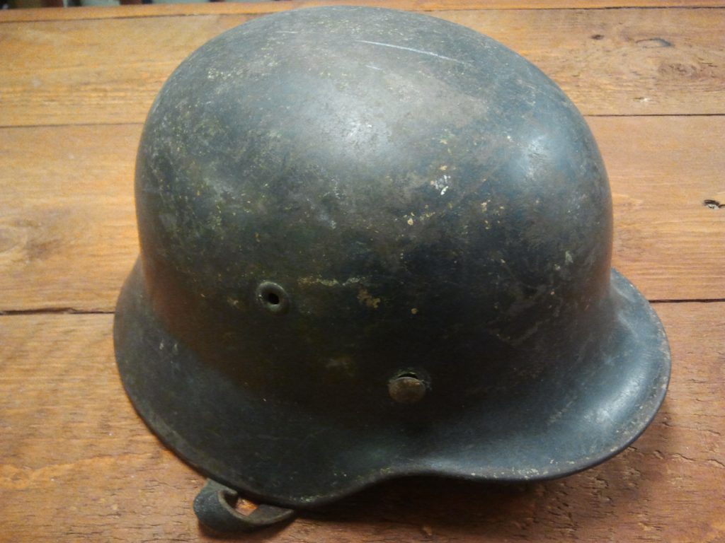 In november 2012 schonk Harrie Jochems twee helmen aan het museum. Het zijn bijzonder mooie en authentieke exemplaren waarvan van beiden de herkomst bekend is. De oorspronkelijke eigenaar van de Nederlandse helm heeft hem in mei 1940 gedragen op de Grebbeberg bij Rhenen. De Duitse helm heeft Harrie in oktober 1944 als jongen zelf gevonden bij voormalig kasteel Maxburg bij het Belgische Meer bij Hoogstraten. Vanuit Zundert, waar Harrie woonde, konden de gevechten in de omgeving van Maxburg goed gehoord worden. Regelmatig werden Duitse gewonden binnengebracht in de jongensschool van Zundert, dat als hospitaal was ingericht. Toen Zundert bevrijd werd, konden Harrie en zijn broer de verleiding niet weerstaan om eens bij Maxburg te gaan kijken. Ze troffen daar in het bos vele verlaten schuttersputten aan en door de Duitsers achtergelaten oorlogsmateriaal. De helmen, waarvan er velen scheuren en kogelgaten vertoonden, hadden wel de meeste interesse bij Harrie. Regelmatig kwam hij dan ook bij Maxburg terug om nieuwe voorraad te halen. Dat ging allemaal te voet want fietsen kon Harrie nog niet en daarbij waren de fietsen door de Duitsers meegenomen. Het ging goed tot Harrie op een dag door een paar commiezen werd aangehouden. De dreiging met gevangenisstraf als Harrie nog een keer werd betrapt, was voldoende reden om er niet meer terug te komen. Van alles wat Harrie heeft meegesleept, is deze helm de enige wat nog resteert.
