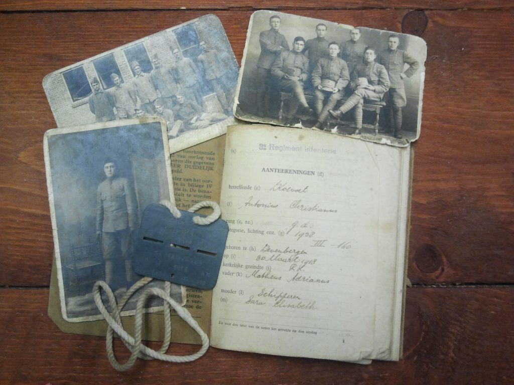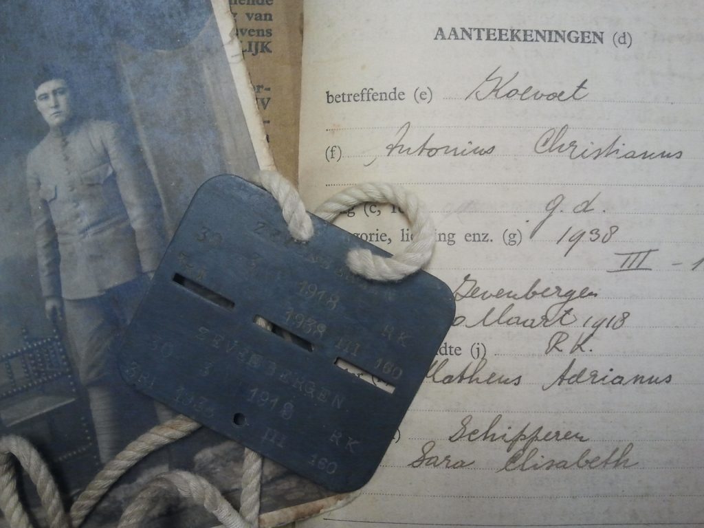 In 2014 schonk dhr. Koevoets het museum persoonlijke attributen van zijn diensttijd bij 3 RI (3e Regiment Infanterie) zoals foto’s, een herkenningsplaatje en militair oorlogszakboekje. Anton behoorde tot lichting 1938. 3 RI is deels ingezet bij de verdediging van de Peel-Raamstelling bij het Brabantse Mill.