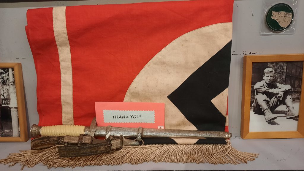 Op 28 mei 2025 bezocht de Amerikaanse Julie Harris het museum. Zij is de dochter van Private Gerald Powell, Medic (gewondenverzorger) van de Charlie compagnie van het 329e geneeskundige bataljon van 104 (US) Infanterie Divisie Timberwolves. Gerald zelf heeft het museum in september 2014 bezocht evenals andere plaatsen in Nederland en Duitsland. Julie schonk namens haar vader de souvenirs die Gerald in 1945 uit Duitsland heeft meegenomen waaronder een hakenkruisvlag die aan een Duits overheidsgebouw heeft gehangen en een Duitse paradedolk van een officier van de Luftwaffe. Ook de brief die Generaal-Majoor Allen, commandant van 104 (US) Infanterie Divisie, heeft geschreven en uitgedeeld aan zijn manschappen eind 1945, toen de meeste gevechten gestopt waren. Ook overhandigde zij foto’s van haar vader in uniform van zijn bezoek aan Nederland in 2014. Julie memoreerde dat het bezoek van haar vader in 2014 hem heeft geholpen in het accepteren van zijn oorlogsverleden en dat hij na zijn bezoek aan Nederland en Duitsland meer vrede had met zijn oorlogservaringen. Ook ging hij meer praten met zijn kinderen over zijn tijd in het leger.