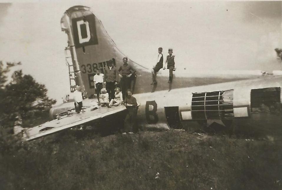 De B-17 LN-B Sad Flag die op 7 oktober 1944 landde op de Tiggeltscheberg trok veel soevenierjagers en geïnteresseerden.